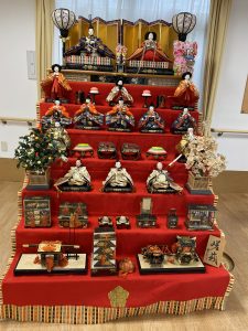玄関には、毎年恒例の雛人形を今年も飾らせて頂きました。